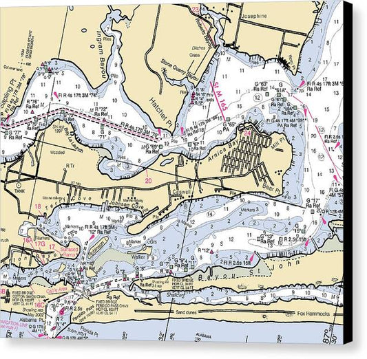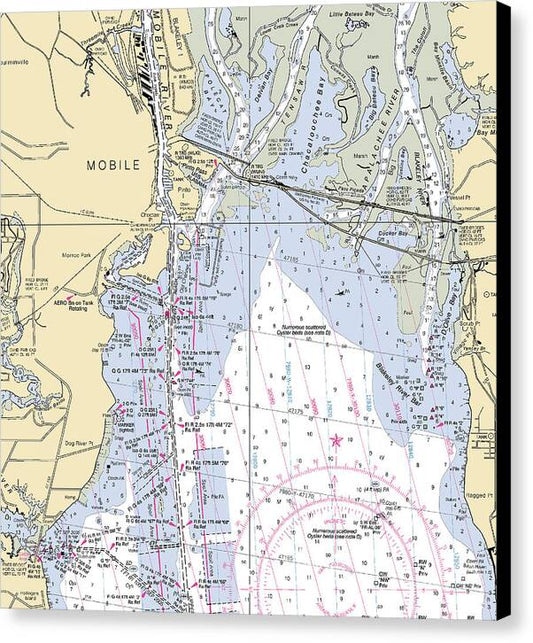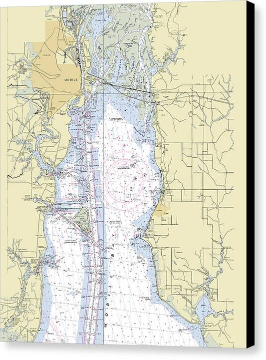 Mobile Alabama Upper Bay Nautical Chart - Canvas Print