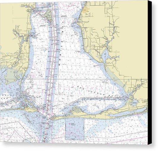 Mobile Alabama Lower Bay Nautical Chart - Canvas Print