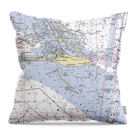 Dauphin Island Alabama Nautical Chart - Throw Pillow