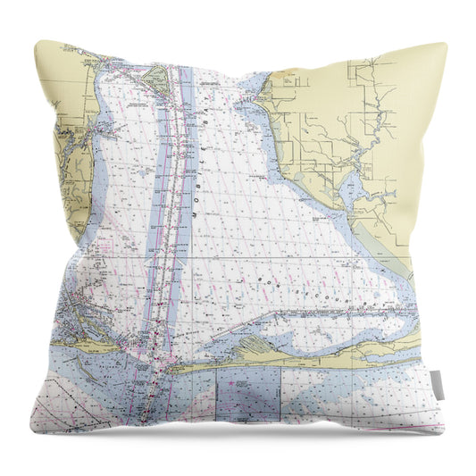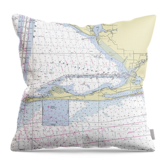 Mobile Alabama Lower Bay Nautical Chart - Throw Pillow