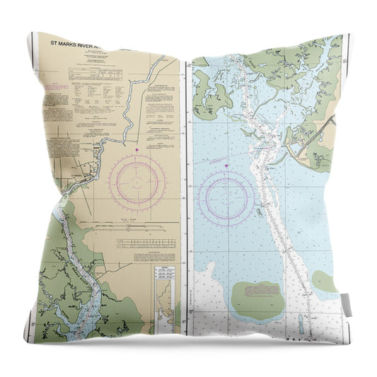 Nautical Chart-11406 Stmarks River-approaches - Throw Pillow