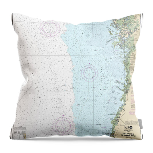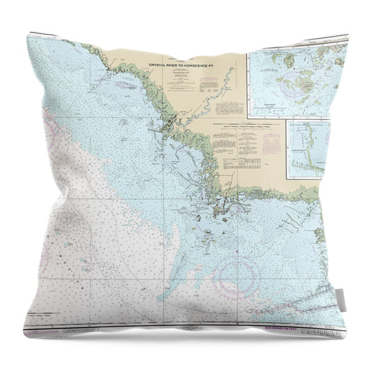 Nautical Chart-11408 Crystal River-horseshoe Point, Suwannee River, Cedar Keys - Throw Pillow