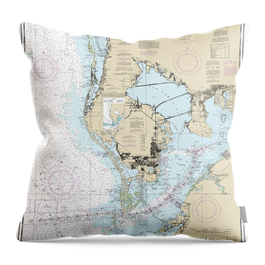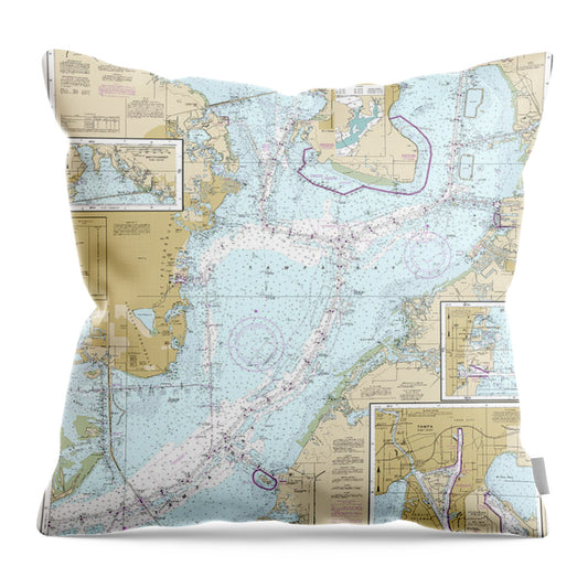 Nautical Chart-11416 Tampa Bay, Safety Harbor, St Petersburg, Tampa - Throw Pillow