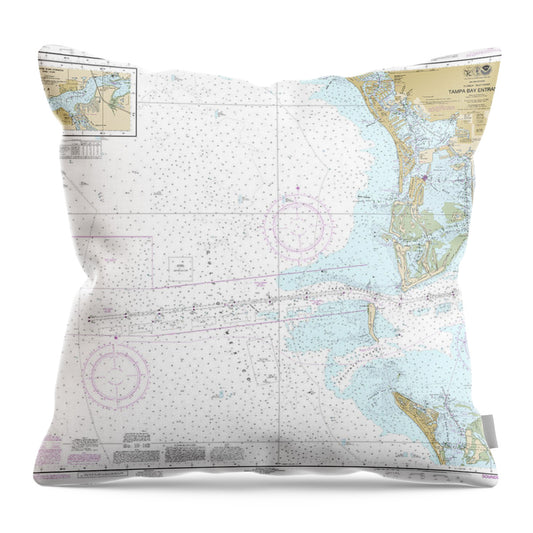 Nautical Chart-11415 Tampa Bay Entrance, Manatee River Extension - Throw Pillow