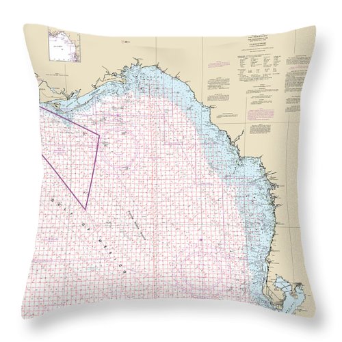 Nautical Chart-1114a Tampa Bay-cape San Blas (oil-gas Leasing Areas) - Throw Pillow