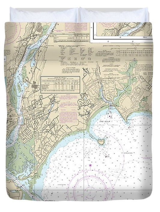 Nautical Chart-12371 New Haven Harbor, New Haven Harbor (inset) - Duvet Cover