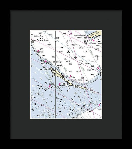 Great Exuma Bahamas Nautical Chart - Framed Print