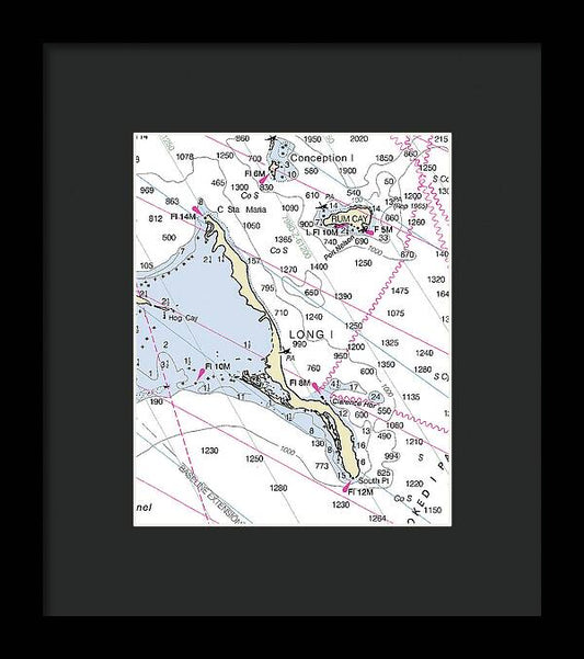 Crooked Island Bahamas Nautical Chart - Framed Print