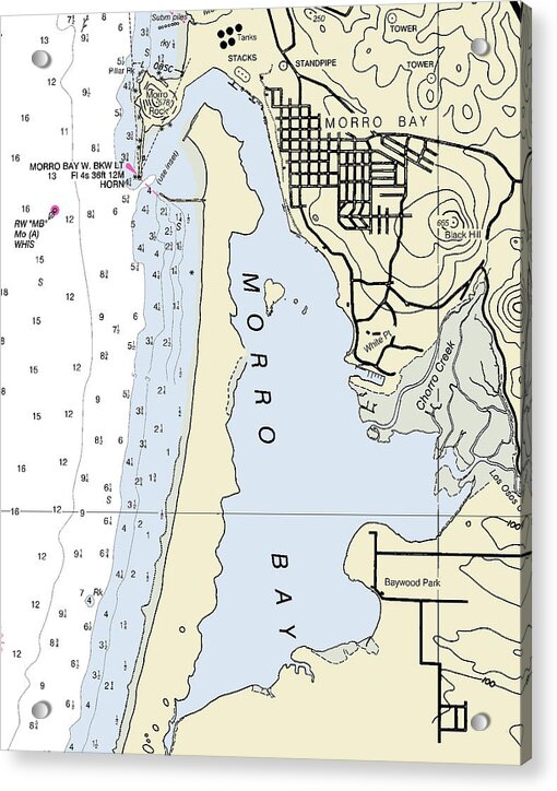 Moss Landing Harbor California Nautical Chart - Acrylic Print