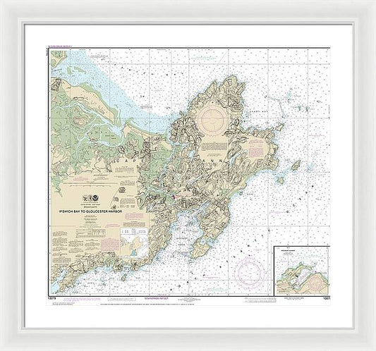 Nautical Chart-13279 Ipswich Bay-gloucester Harbor, Rockport Harbor - Framed Print