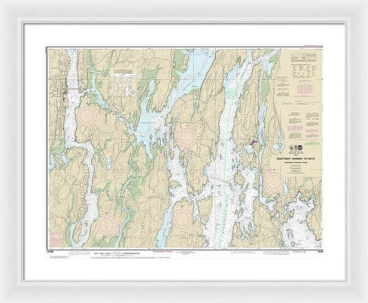 Nautical Chart-13296 Boothbay Harbor-bath, Including Kennebec River - Framed Print
