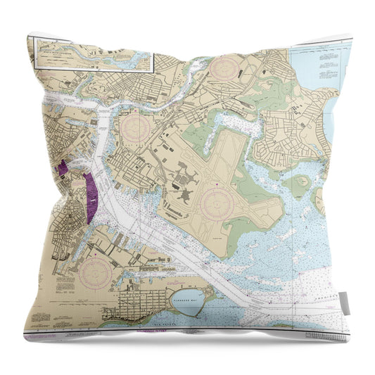 Nautical Chart-13272 Boston Inner Harbor - Throw Pillow