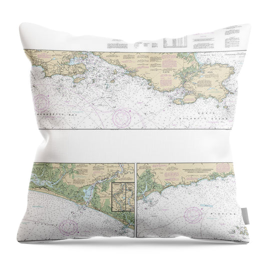 Nautical Chart-13279 Ipswich Bay-gloucester Harbor, Rockport Harbor - Throw Pillow
