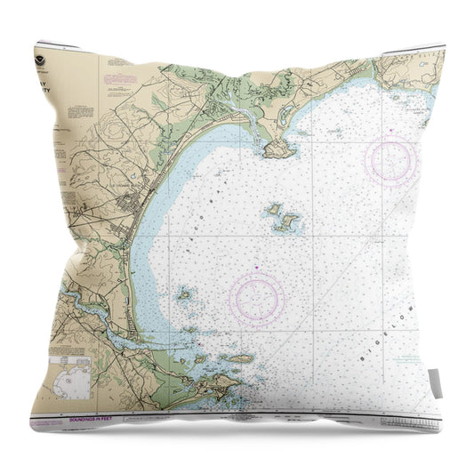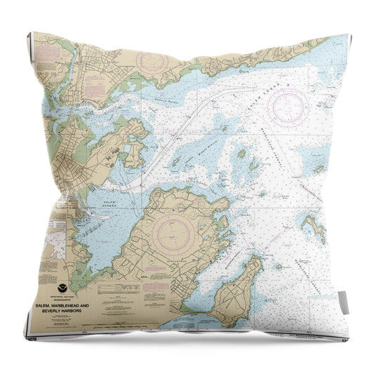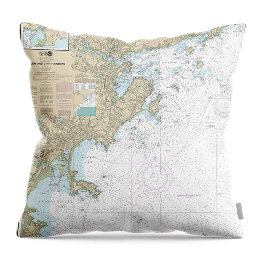 Nautical Chart-13276 Salem, Marblehead-beverly Harbors - Throw Pillow