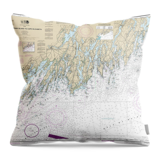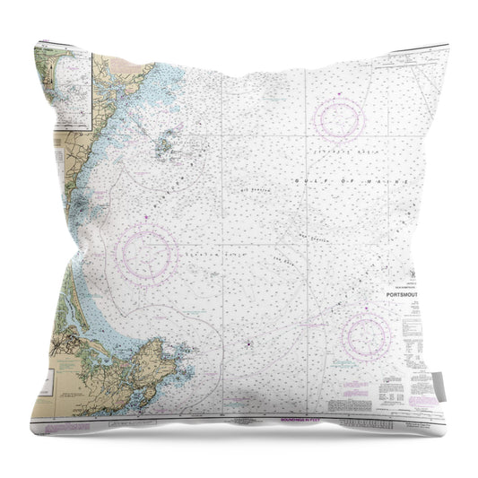Nautical Chart-13286 Cape Elizabeth-portsmouth, Cape Porpoise Harbor, Wells Harbor, Kennebunk River, Perkins Cove - Throw Pillow