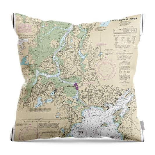 Nautical Chart-13281 Gloucester Harbor-annisquam River - Throw Pillow