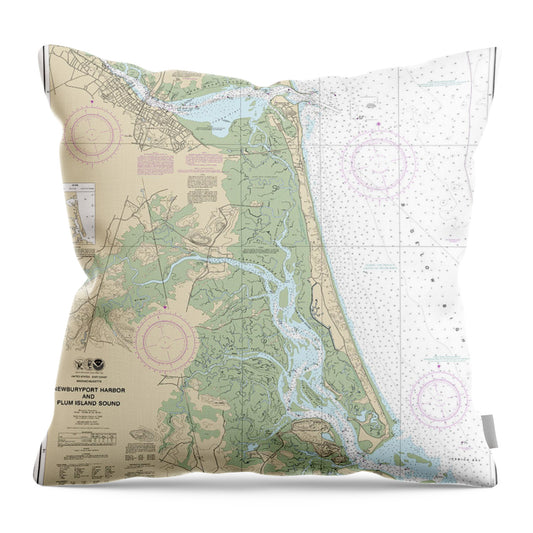 Nautical Chart-13282 Newburyport Harbor-plum Island Sound - Throw Pillow