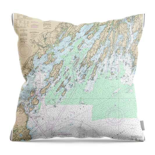 Nautical Chart-13302 Penobscot Bay-approaches - Throw Pillow