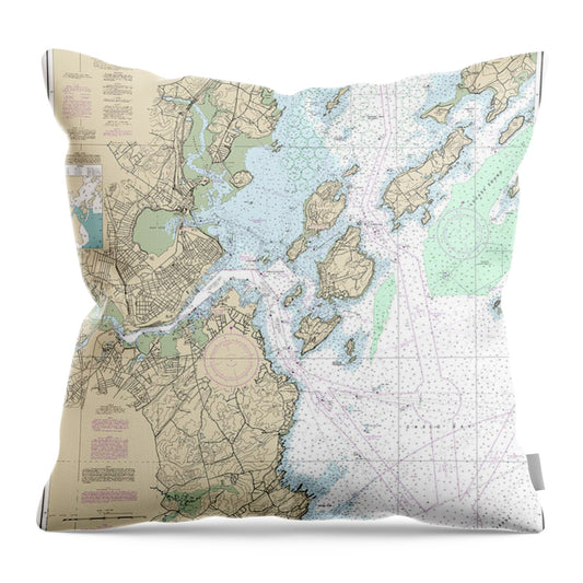 Nautical Chart-13270 Boston Harbor - Throw Pillow