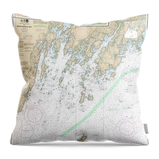 Nautical Chart-13301 Muscongus Bay, New Harbor, Thomaston - Throw Pillow
