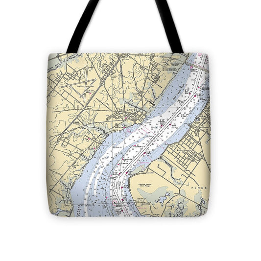 Delaware River and Dover Delaware Nautical Chart - Tote Bag