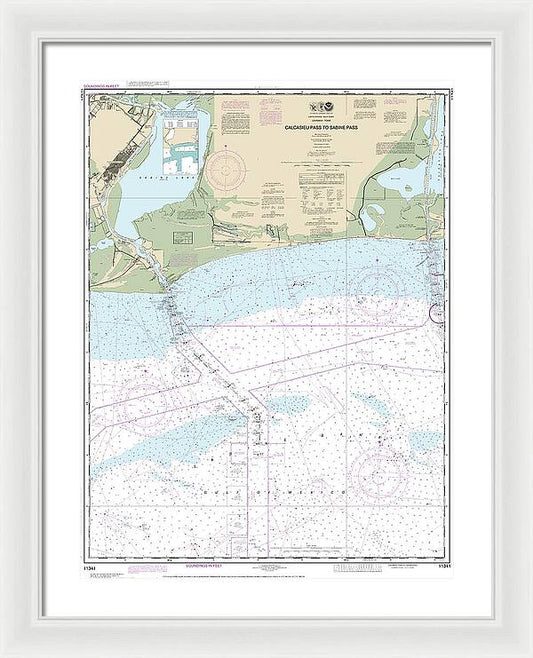 Nautical Chart-11341 Calcasieu Pass-sabine Pass - Framed Print