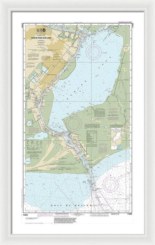 Nautical Chart-11342 Sabine Pass-lake - Framed Print