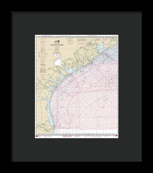 Nautical Chart-1117A Galveston-Rio Grande (Oil-Gas Leasing Areas) - Framed Print