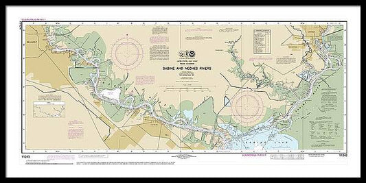 Nautical Chart-11343 Sabine-neches Rivers - Framed Print