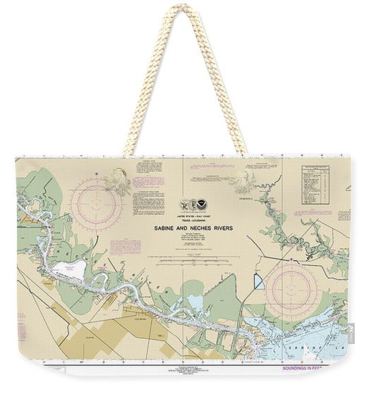 Nautical Chart-11343 Sabine-neches Rivers - Weekender Tote Bag