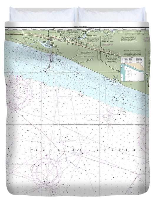 Nautical Chart-11344 Rollover Bayou-calcasieu Pass - Duvet Cover