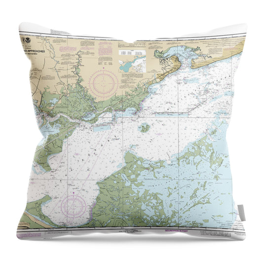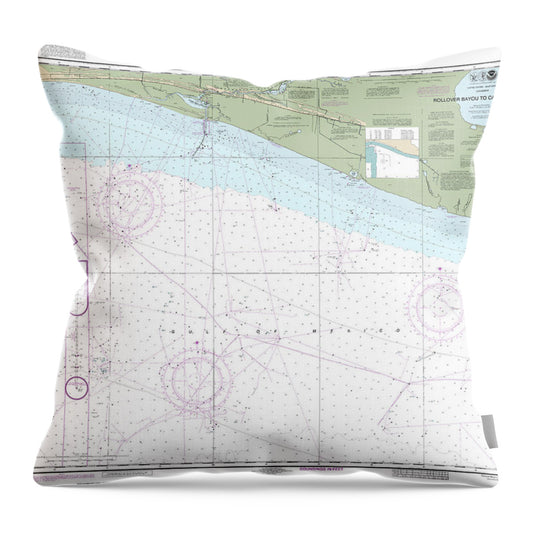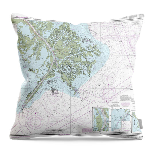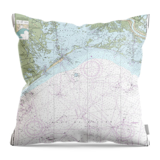 Nautical Chart-11361 Mississippi River Delta, Southwest Pass, South Pass, Head-passes - Throw Pillow