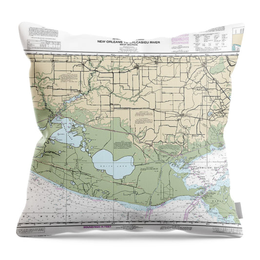 Nautical Chart-11369 Lakes Pontchartrain-maurepas - Throw Pillow