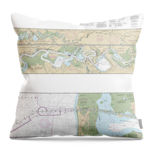 Nautical Chart-11354 Intracoastal Waterway Morgan City-port Allen, Including The Atchafalaya River - Throw Pillow