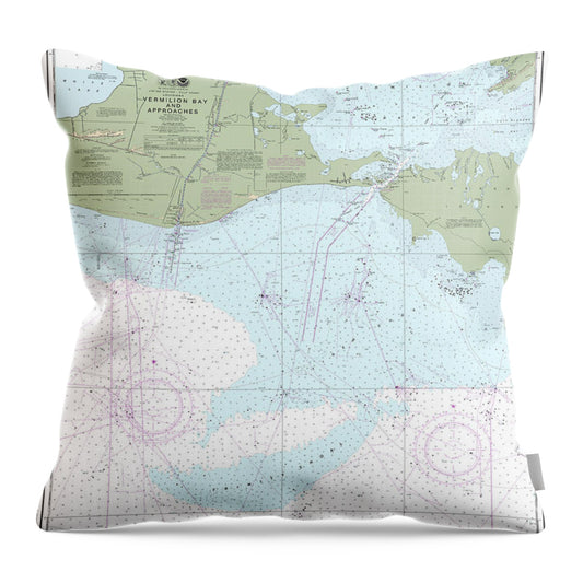 Nautical Chart-11349 Vermilion Bay-approaches - Throw Pillow