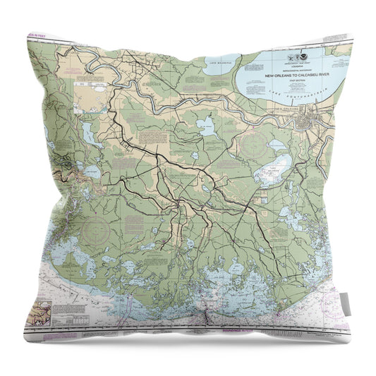 Nautical Chart-11352 Intracoastal Waterway New Orleans-calcasieu River East Section - Throw Pillow