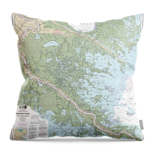 Nautical Chart-11364 Mississippi River-venice-new Orleans - Throw Pillow