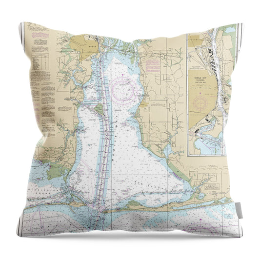 Nautical Chart-11376 Mobile Bay Mobile Ship Channel-northern End - Throw Pillow
