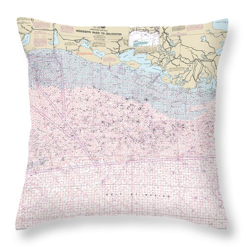 Nautical Chart-1116a Mississippi River-galveston (oil-gas Leasing Areas) - Throw Pillow