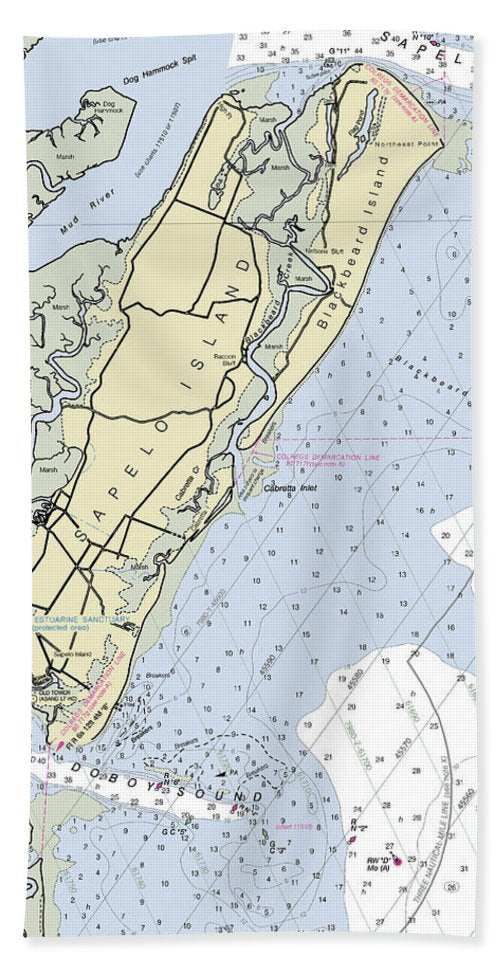 Sapelo Island Georgia Nautical Chart - Bath Towel