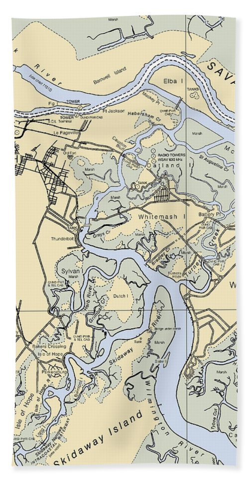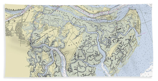 Savannah Hutchinson Island-georgia Nautical Chart - Bath Towel