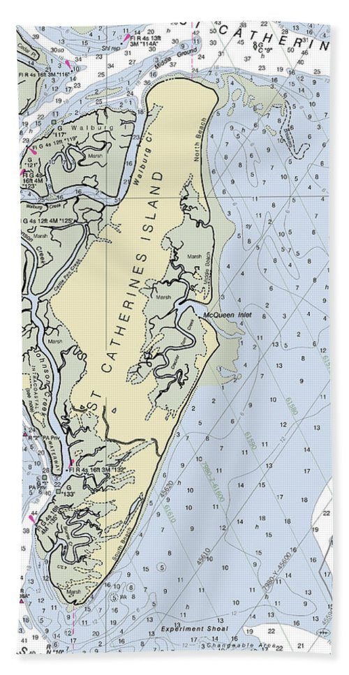 St Catherines Island Georgia Nautical Chart - Bath Towel