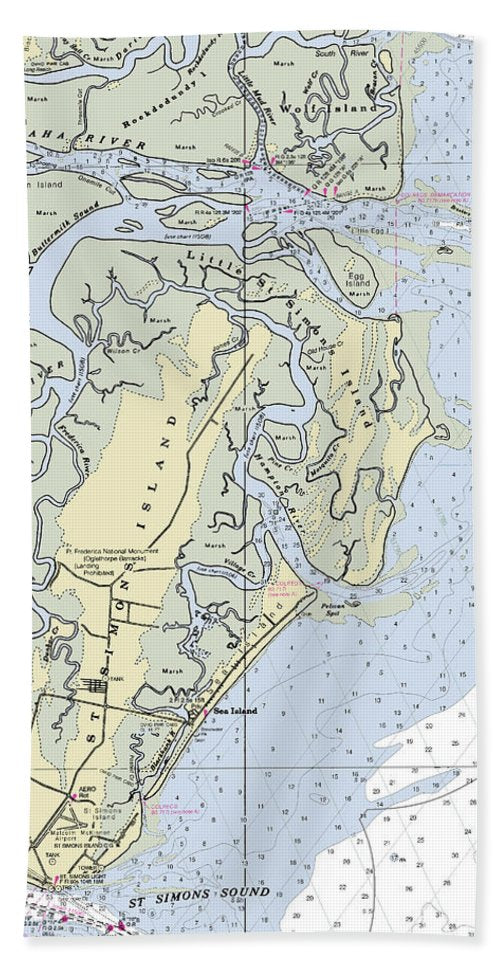 St Simons Island Georgia Nautical Chart - Bath Towel