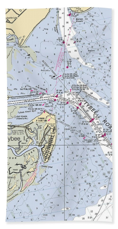 Tybee Roads-georgia Nautical Chart - Bath Towel