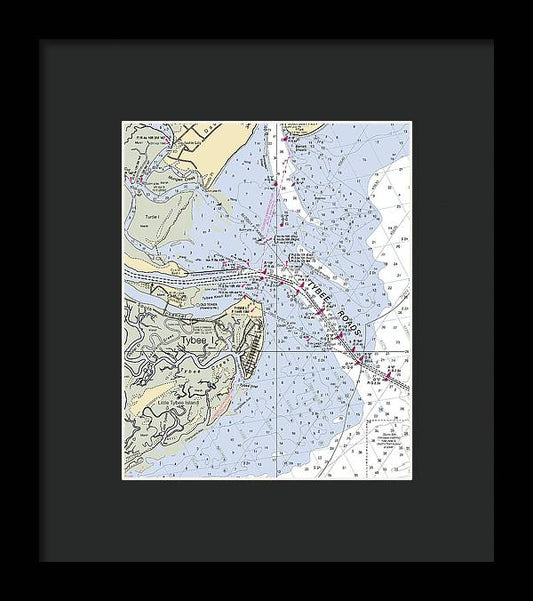 Tybee Roads-Georgia Nautical Chart - Framed Print