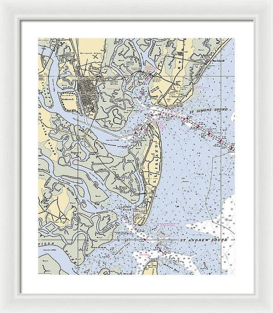 St Simons Island Georgia Nautical Chart - Framed Print