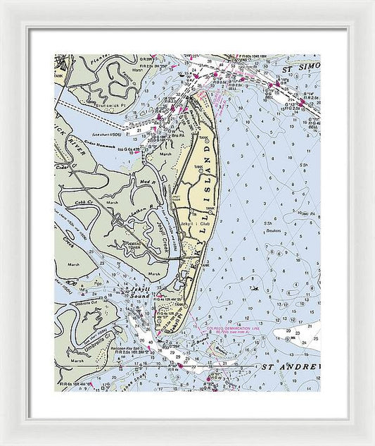 Jekyll Island Georgia Nautical Chart - Framed Print
