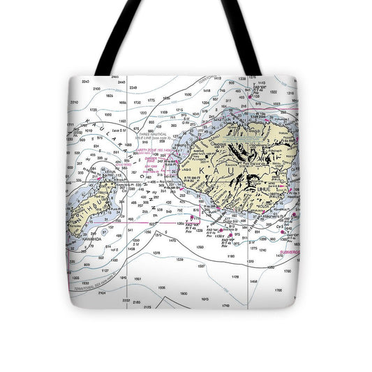 Kauai Hawaii Nautical Chart - Tote Bag