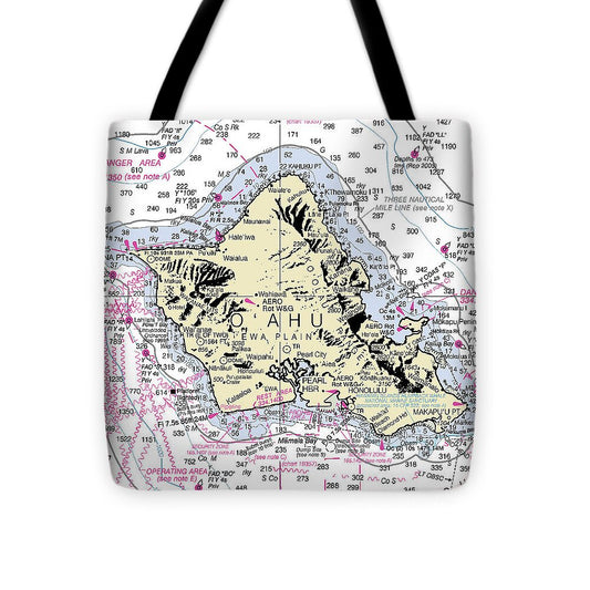 Oahu Hawaii Nautical Chart - Tote Bag