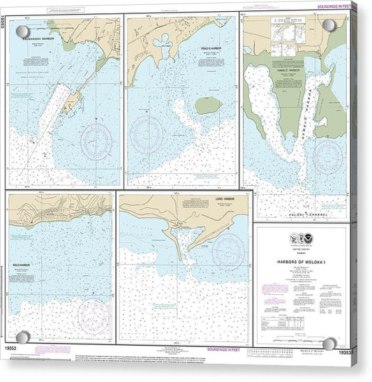 Nautical Chart-19353 Harbors-molokai Kaunakakai Harbor, Pukoo Harbor, Kamalo Harbor, Kolo Harbor, Lono Harbor - Acrylic Print